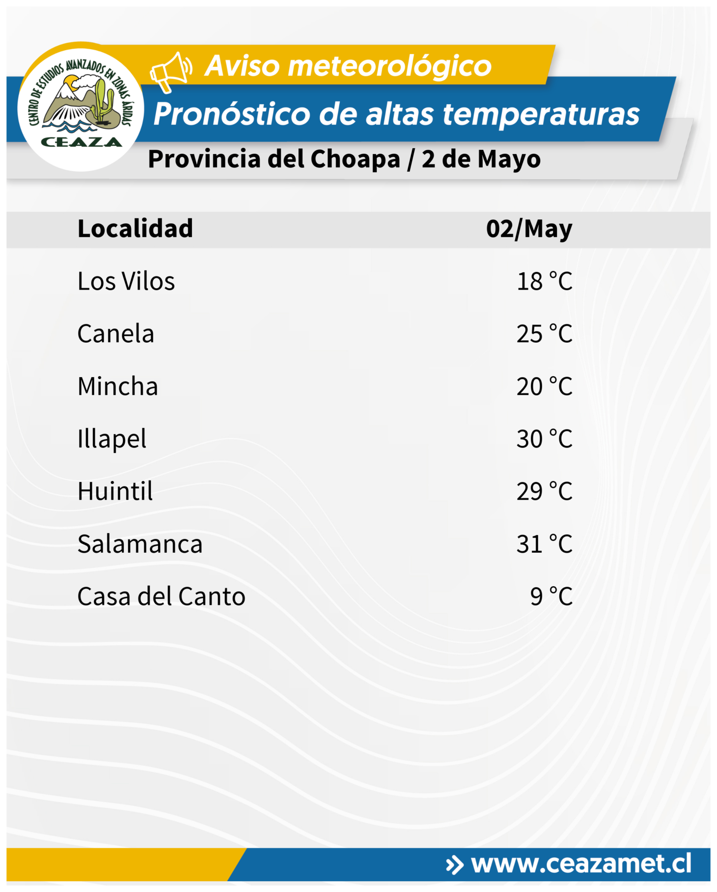 En Choapa, las altas temperaturas alcanzarán su mayor magnitud en Salamanca con un pronóstico de 31°C.