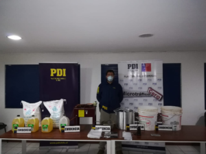 Según los antecedentes, los detectives luego de diligencias investigativas y análisis criminal, se habrían trasladado hasta un domicilio ubicado en el sector el Canelillo, de la comuna de Illapel, donde lograron encontrar diversos elementos tales como acido muriático, sacos de bicarbonato, baldes con residuos de droga y otros elementos de dosificación.
