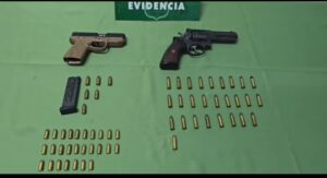 Carabineros logró la detención de uno de ellos, identificado como J.J.T., ciudadano colombiano de 37 años, mientras el conductor logró escapar. En la revisión del vehículo se incautó una pistola calibre 9 mm, un revólver calibre .38 —este último con registro a nombre de un ciudadano fallecido en 2020— y una importante cantidad de municiones de distintos calibres: 9 mm (6 cartuchos), .38 SPL (26 cartuchos) y .380 auto (27 cartuchos).