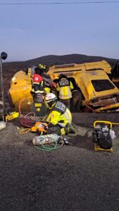 Al llegar al lugar, las unidades de la Primera y Segunda Compañía de Bomberos constataron el volcamiento de un vehículo mayor, el cual quedó recostado a un costado de la carretera. En su interior, el conductor permanecía atrapado.