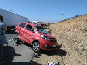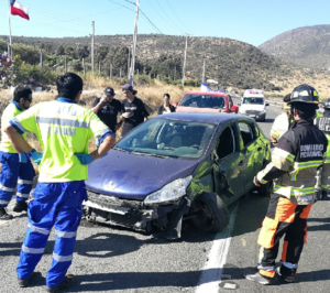Conductor proveniente de balneario Las Tacas con destino a Santiago perdió el control del móvil e impactó el cerro de autopista sector Quebrada El Negro, provocando el volcamiento del automóvil km 218, cerca de Los Vilos.
