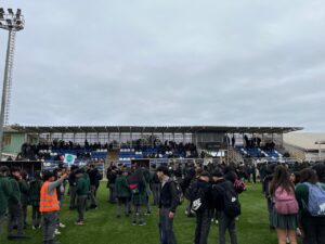 Ante la situación, se activaron los protocolos de emergencia y se realizó una evacuación preventiva de estudiantes y funcionarios hacia el sector del estadio, mientras personal de Bomberos llegó al lugar para inspeccionar el origen de la posible fuga.