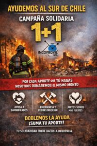En un gesto sensible y profundamente solidario, la empresa de Los Vilos INCOPROVIL inició junto a sus trabajadores y trabajadoras la campaña “1 + 1”, una iniciativa destinada a ir en ayuda de las familias y comunidades que han sido gravemente afectadas por los incendios forestales que impactan al sur del país.
