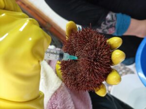 El cultivo es supervisado por los profesionales acuícolas Miguel Rivera y Francisca Pérez de la Fepemach, y comenzó con la recolección de erizos reproductores desde el área de manejo de la caleta Puerto Oscuro, que luego, en laboratorio, fueron inducidos al desove y a la fecundación in vitro. En 24 horas, este proceso permitió generar miles de larvas que hoy se encuentran en fase de alimentación a base de macroalgas, fijación y crecimiento en el hatchery de Los Vilos, donde pasarán dos años hasta alcanzar dos centímetros de talla para poder su traslado a las caletas.