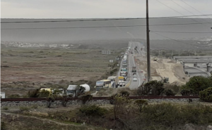Una enorme cantidad de vehículos se encontraban detenidos esta tarde en la pista de Norte a Sur de la Ruta 5 Norte a la altura del antiguo puente ferroviario cercano al cruce Los Vilos-Illapel.