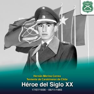 Hoy, 6 de noviembre de 2023, se cumplen 58 años de la muerte del Teniente de Carabineros Hernán Merino Correa, fallecido en la zona de Laguna del Desierto mientras defendía la soberanía nacional. Fecha simbólica y acto heroico para todo Carabinero, pues representa también una instancia para recordar los valores y principios de nuestra doctrina institucional, propia del quehacer diario en cada uno de quienes orgullosamente vestimos el verde uniforme.
